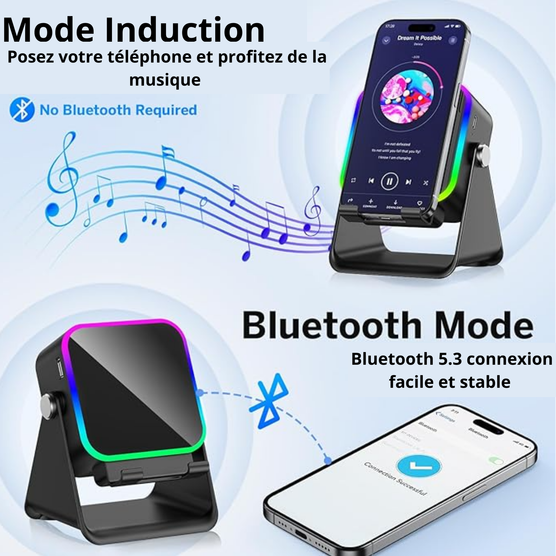 Connexion Bluetooth 5.3, bassses profondes et stéréo de haute qualité remplissent chaque pièce.
