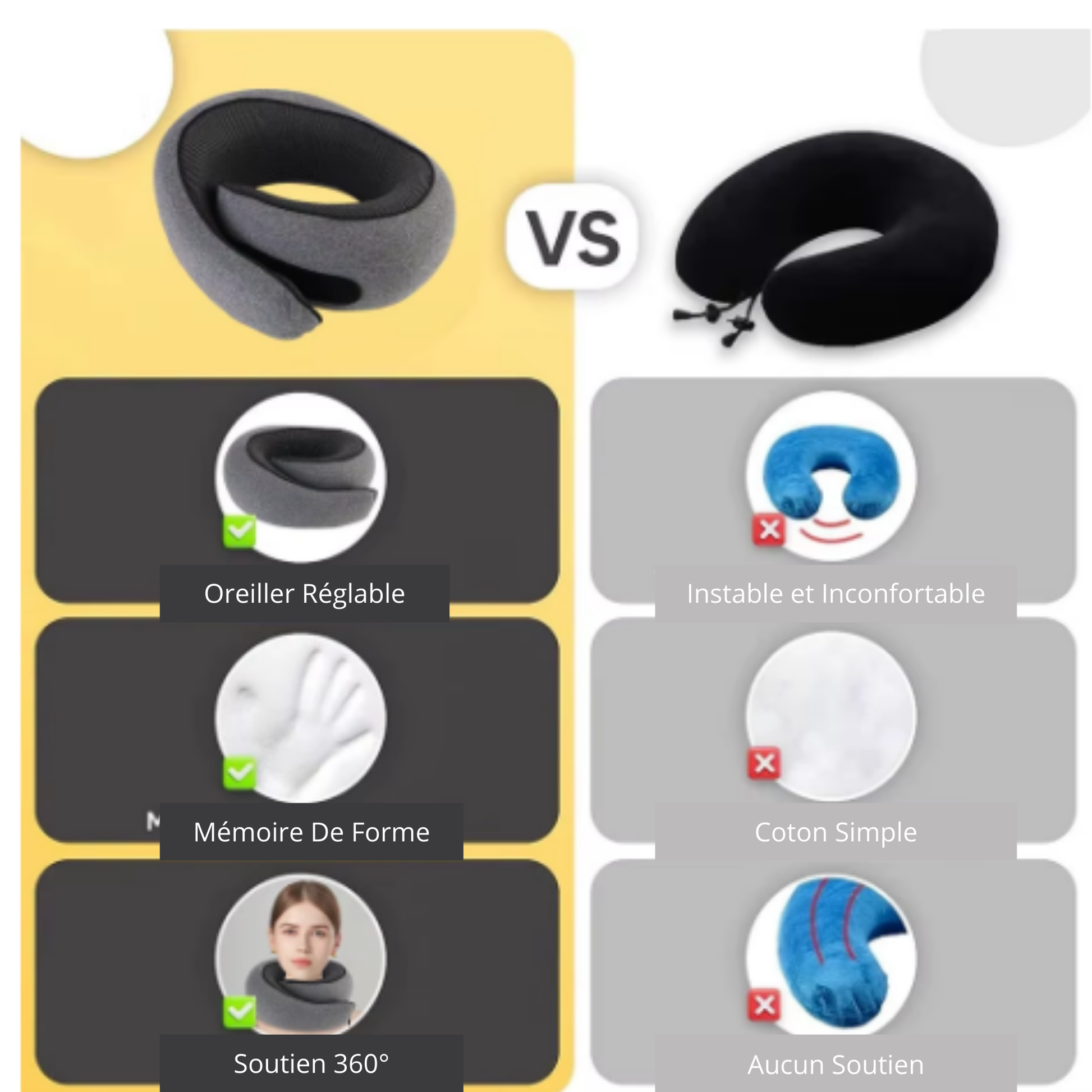 Avec cet oreiller ergonomique 360, confort immédiat, que vous soyez en avion, en train ou au bureau.